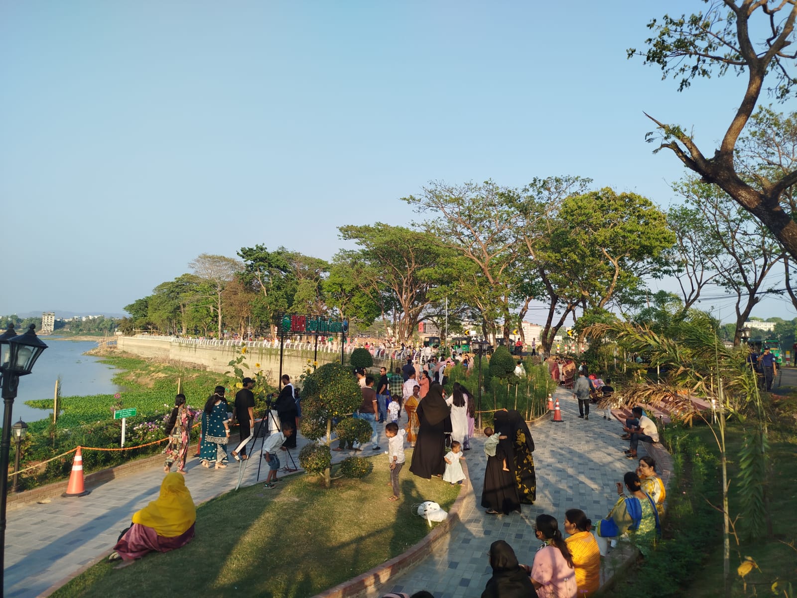 Many rented boats to cruise across Kaptai Lake, while others spent time at the Sunrise Eco Park within the complex. Crowds also swelled at Polwel Park, DC Bungalow Park, Asambasti Bridge, and the Asambasti‑Kaptai Link Road. A new attraction this Eid was Sauj Lakeview Garden, featuring about a hundred species of flowers, which drew large numbers of locals.