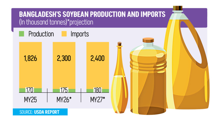 Bangladesh depends heavily on imports to meet edible oil demand because domestic output is limited. Local production meets only about 10 percent of the country’s total requirement, according to USDA estimates.