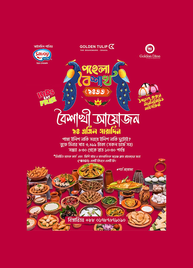 Sazzad Hossain, assistant director of marketing and communications of Golden Tulip The Grandmark Dhaka, said, “Pahela Baishakh is all about new beginnings, culture, and creating memories with loved ones. We wanted to elevate the celebration this year by blending the rich, comforting flavors of Bengali cuisine and the endless sweetness of unlimited Savoy ice cream with an exciting opportunity to win a dream getaway to the world's longest natural sea beach.”