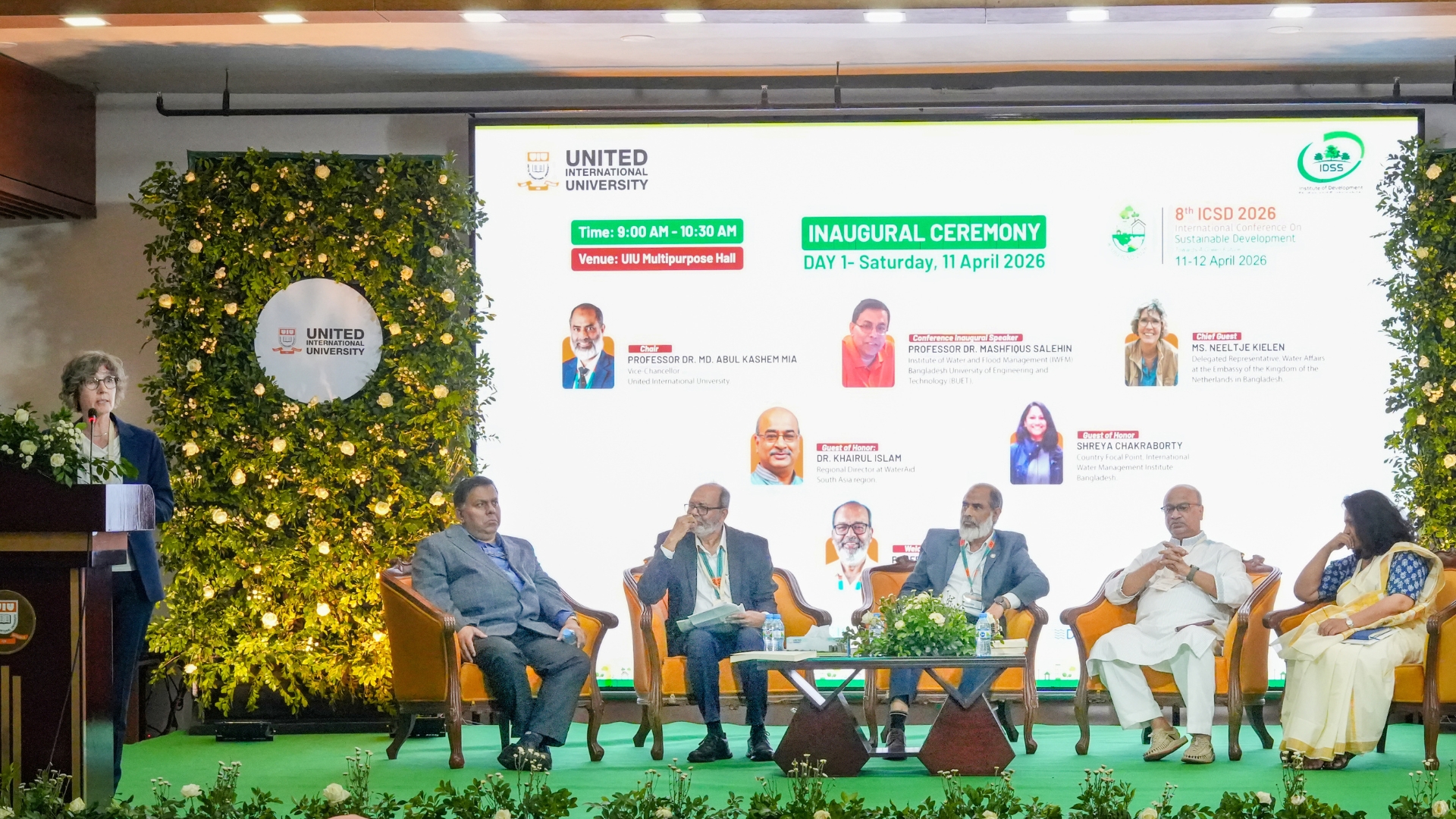 Prof. Dr Mashfiqus Salehin from the Institute of Water and Flood Management, Bangladesh University of Engineering and Technology (BUET), was present as the inaugural speaker. Prof. Dr Hamidul Huq, Director of the Institute of Development Studies and Sustainability (IDSS) and Convener of the 8th UIU-ICSD 2026, opened the inaugural session with a welcome and introductory address at the conference.