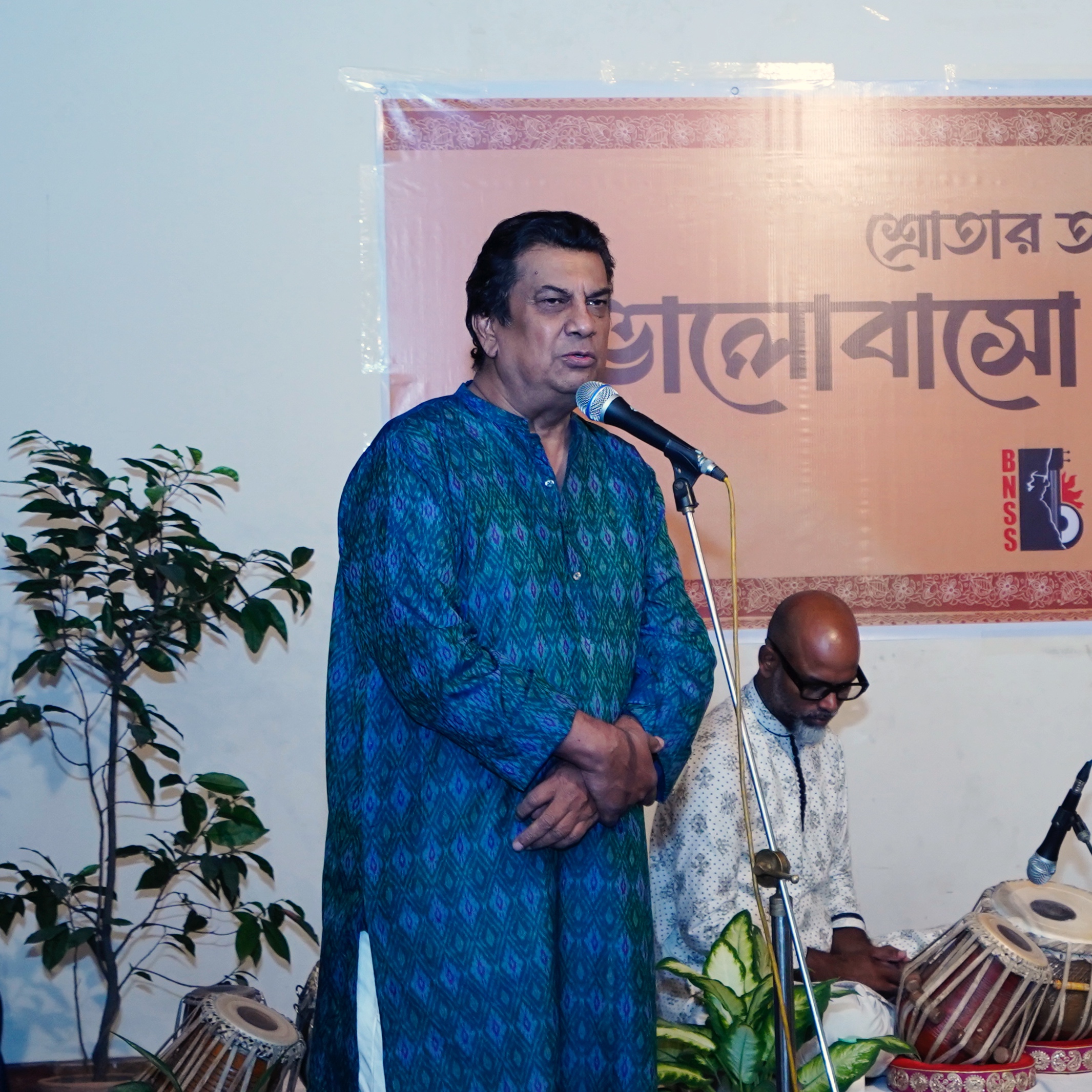 The evening began with a welcome address by the organisation’s general secretary, Khairul Anam Shakil, who highlighted the importance of preserving and promoting Nazrul Sangeet among newer generations of listeners and performers.