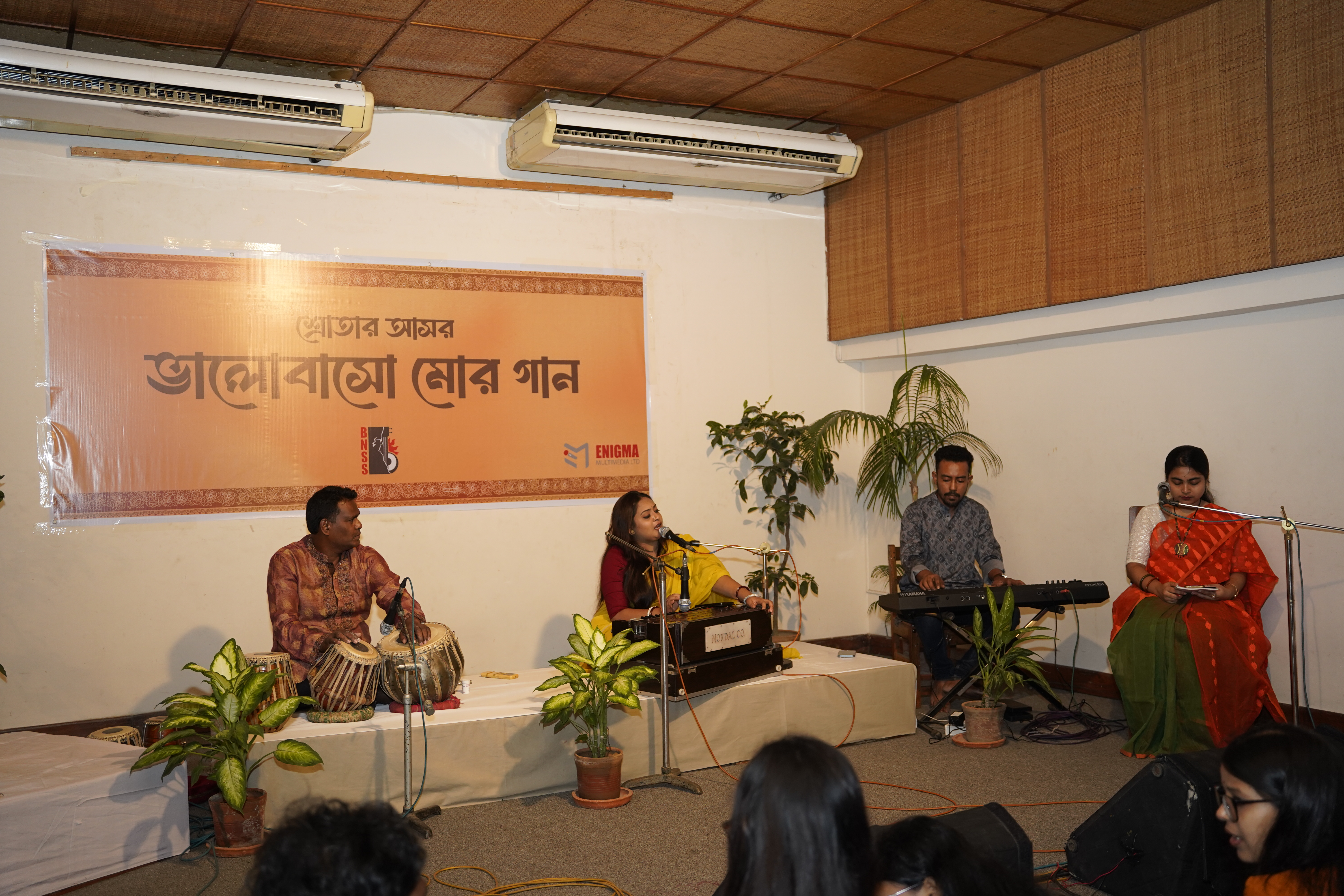 The programme took place on April 25 at the Ramesh Chandra Dutta Smriti Milan Kendra of Chhayanaut. The title of the event was drawn from a line in Nazrul’s own lyrics, reflecting the enduring emotional depth and appeal of his music.