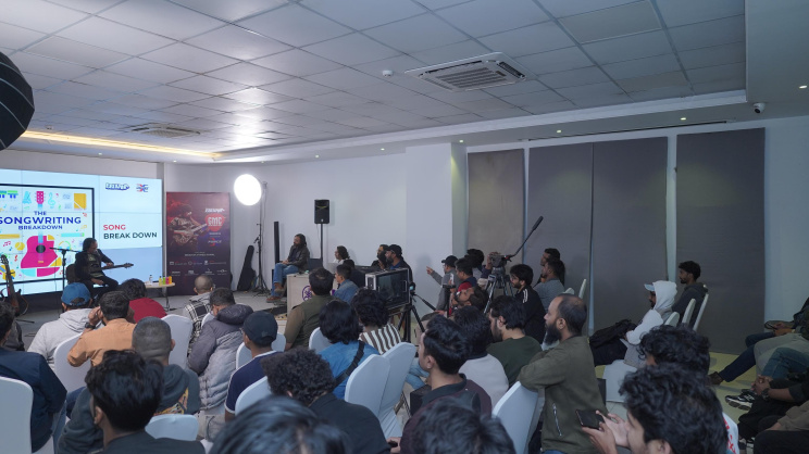To demonstrate, Kamal asked the room for a random topic—“election”—and, with humour and precision, showed how tonality could exist within anything. He followed this with breakdowns of Warfaze classics including “Rupkotha”, “Purnota” and “Oshamajik”.