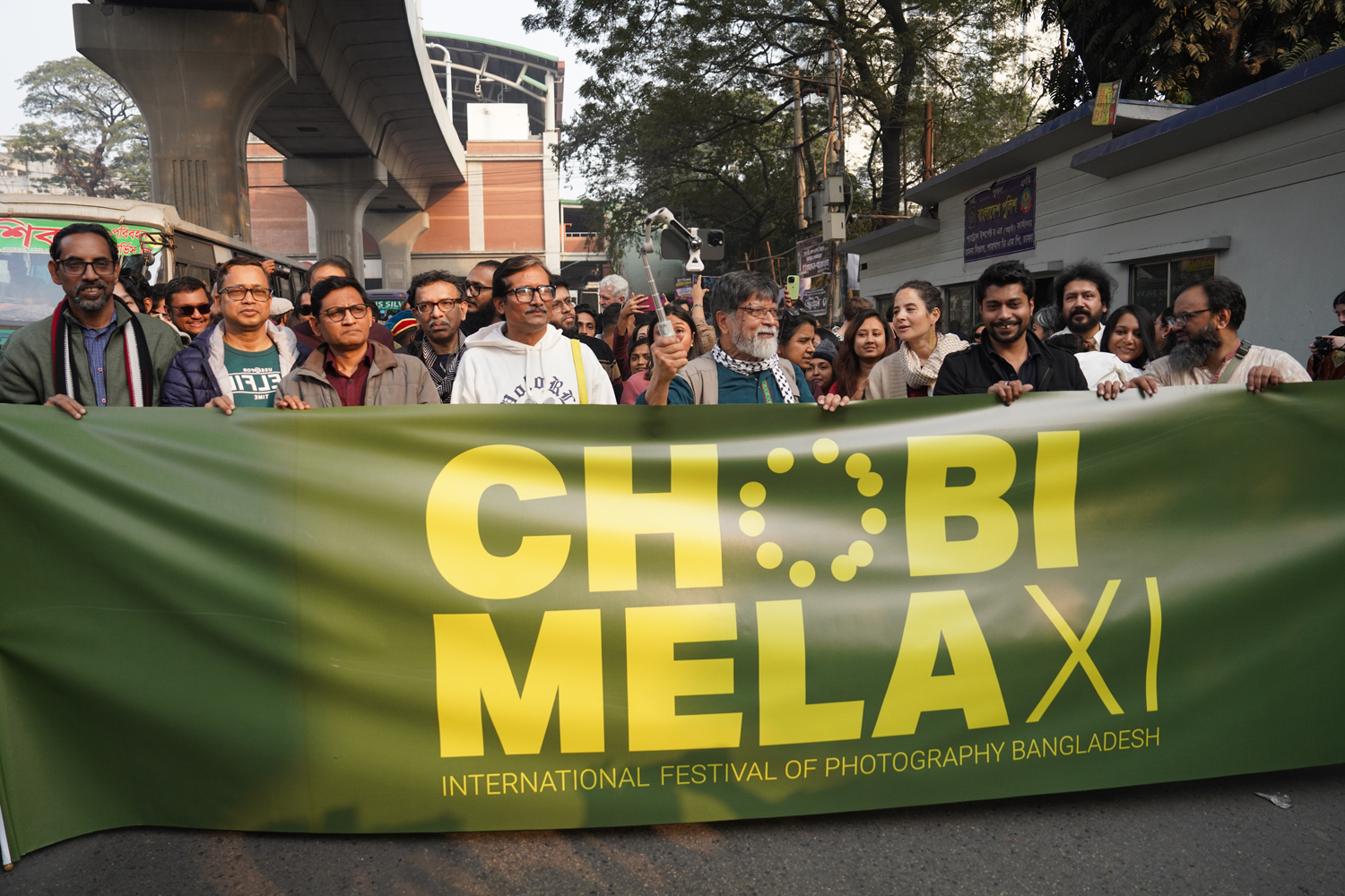 Festival organisers, curators, local and international photographers, students and artists joined the procession, marking the official start of the 25th anniversary edition of Chobi Mela.