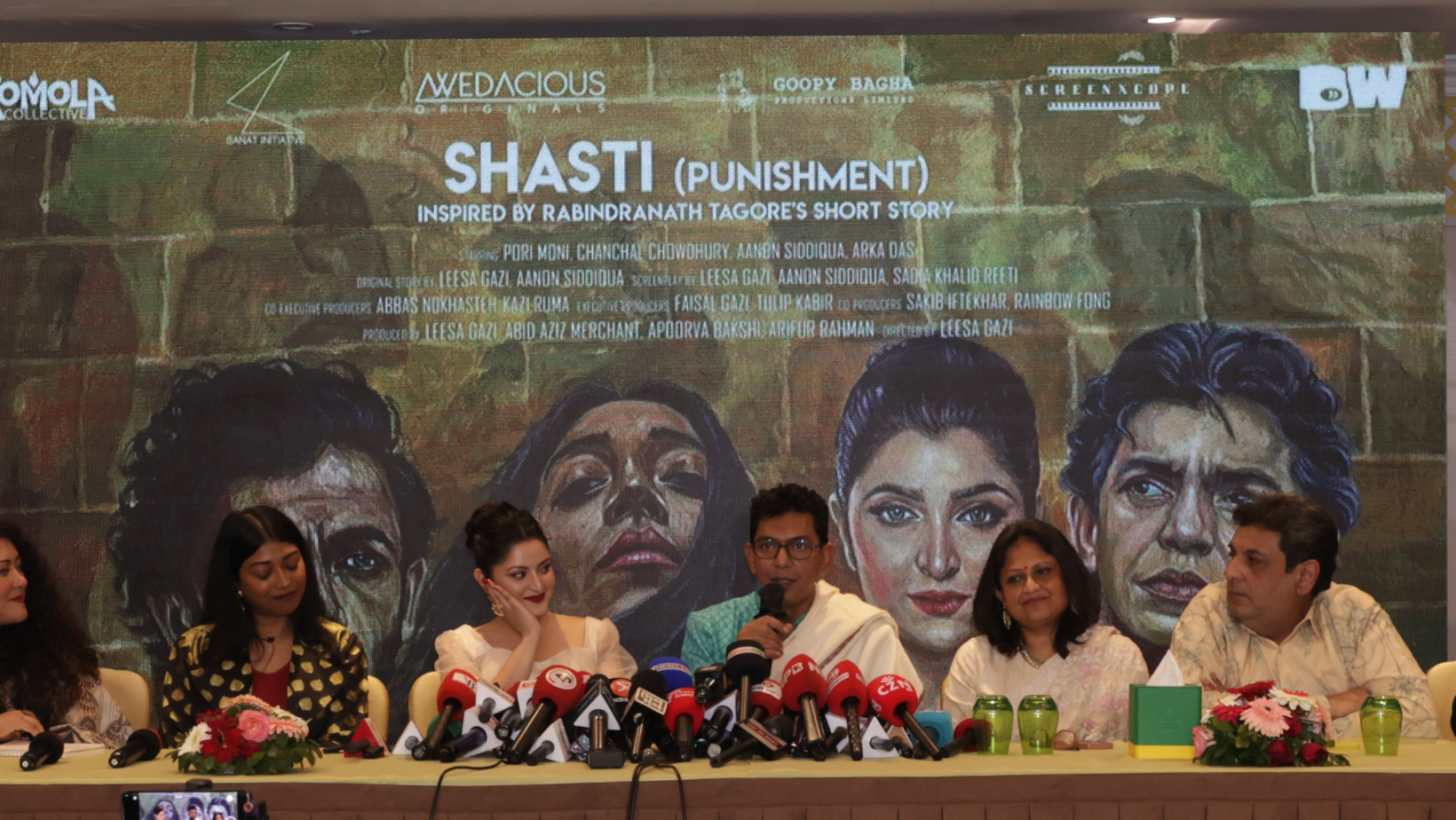 Titled “Shasti”, the upcoming film is directed by Leesa Gazi, who earlier earned critical acclaim for “Barir Naam Shahana”. Rather than a direct retelling, the screenplay has been rewritten to situate Tagore’s narrative within present-day realities. The film stars Chanchal Chowdhury, Pori Moni, Aanon Siddiqua, and Orko Das in its four central roles.