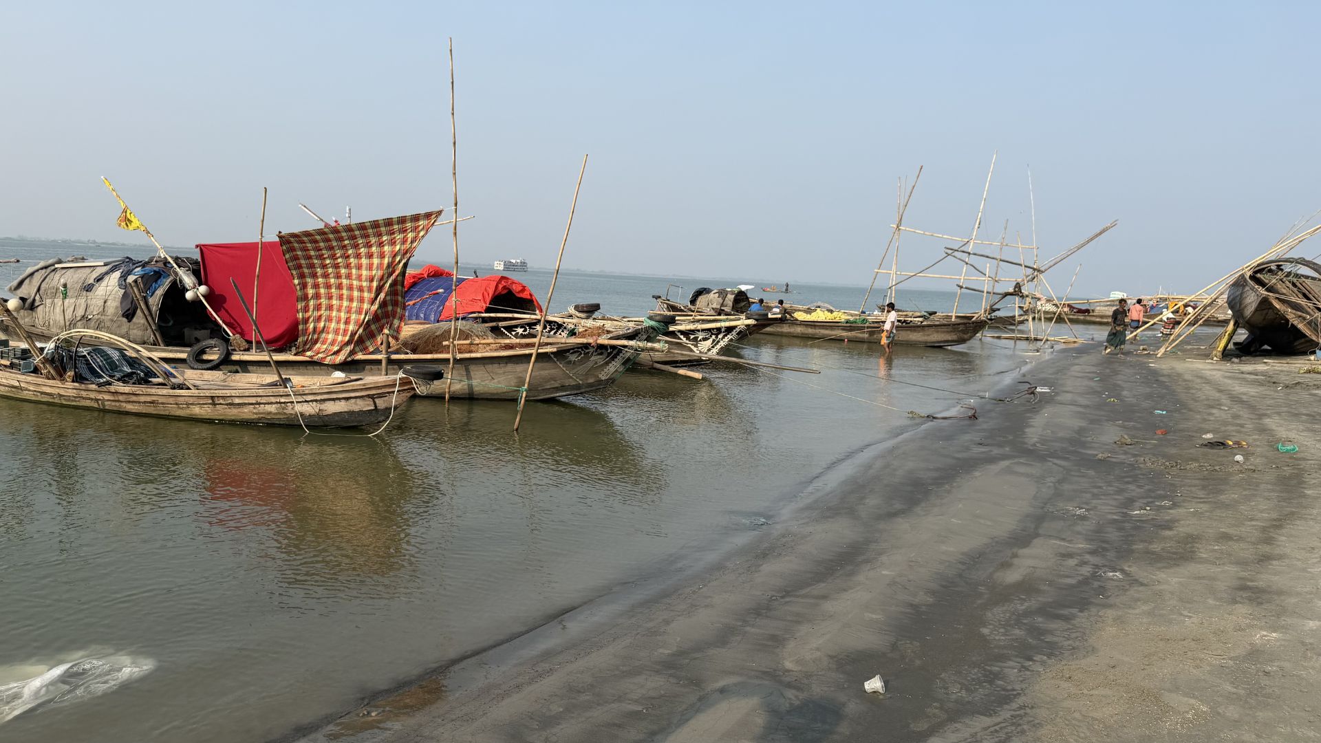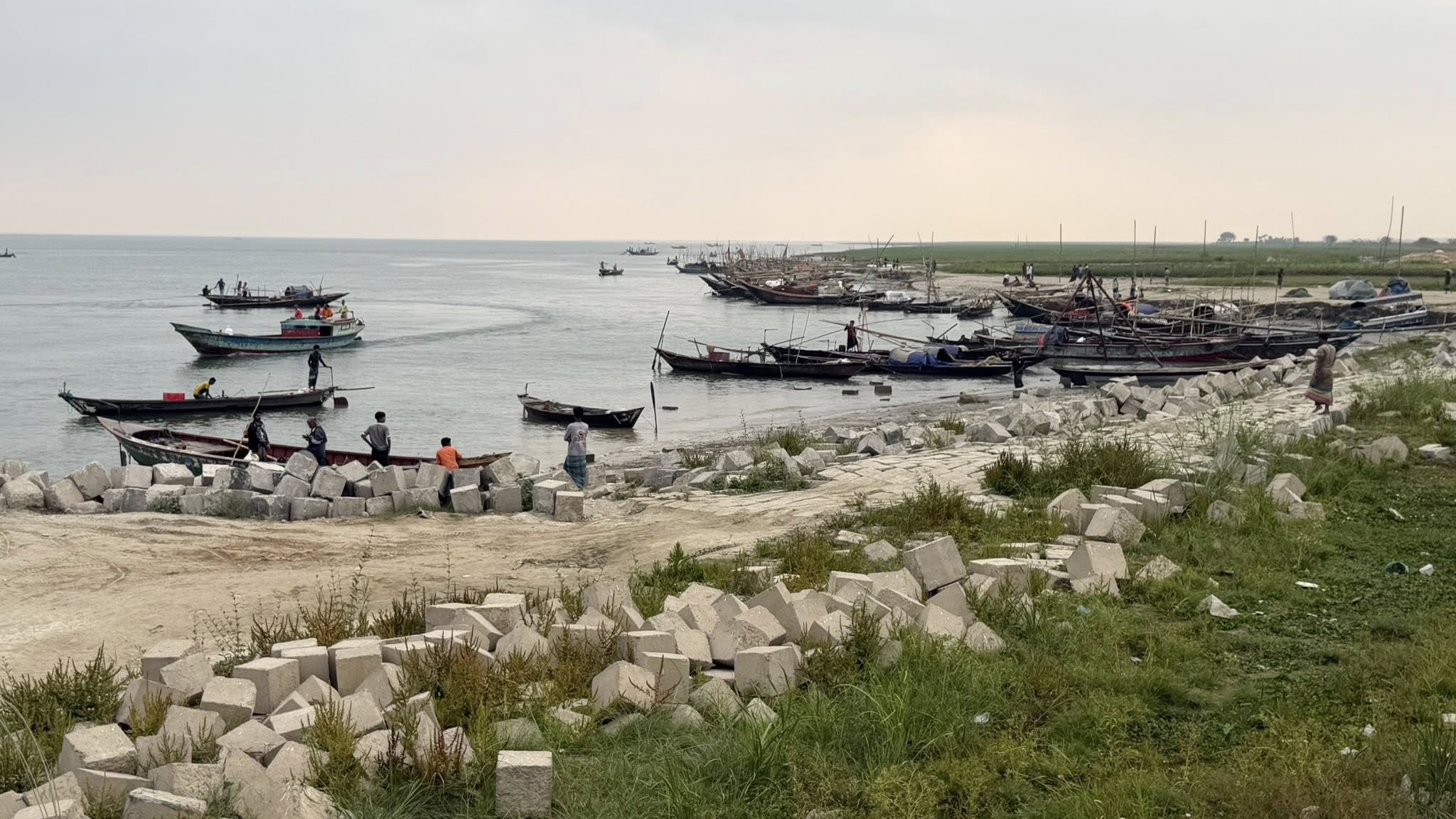 On Friday afternoon in Naria’s Sureshwar area, most boats were anchored along the riverbank. Fishermen mended nets, repaired boats, or played board games to pass the time. “I have not been able to fish for three days,” said Abu Sufian of Goriber Char union.