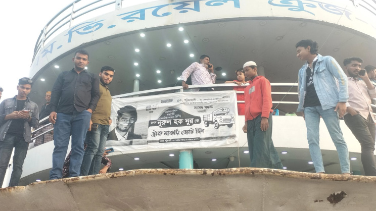 At Sadarghat launch terminal, passengers boarded launches hired by candidates without paying fares, often upon showing voter ID cards.