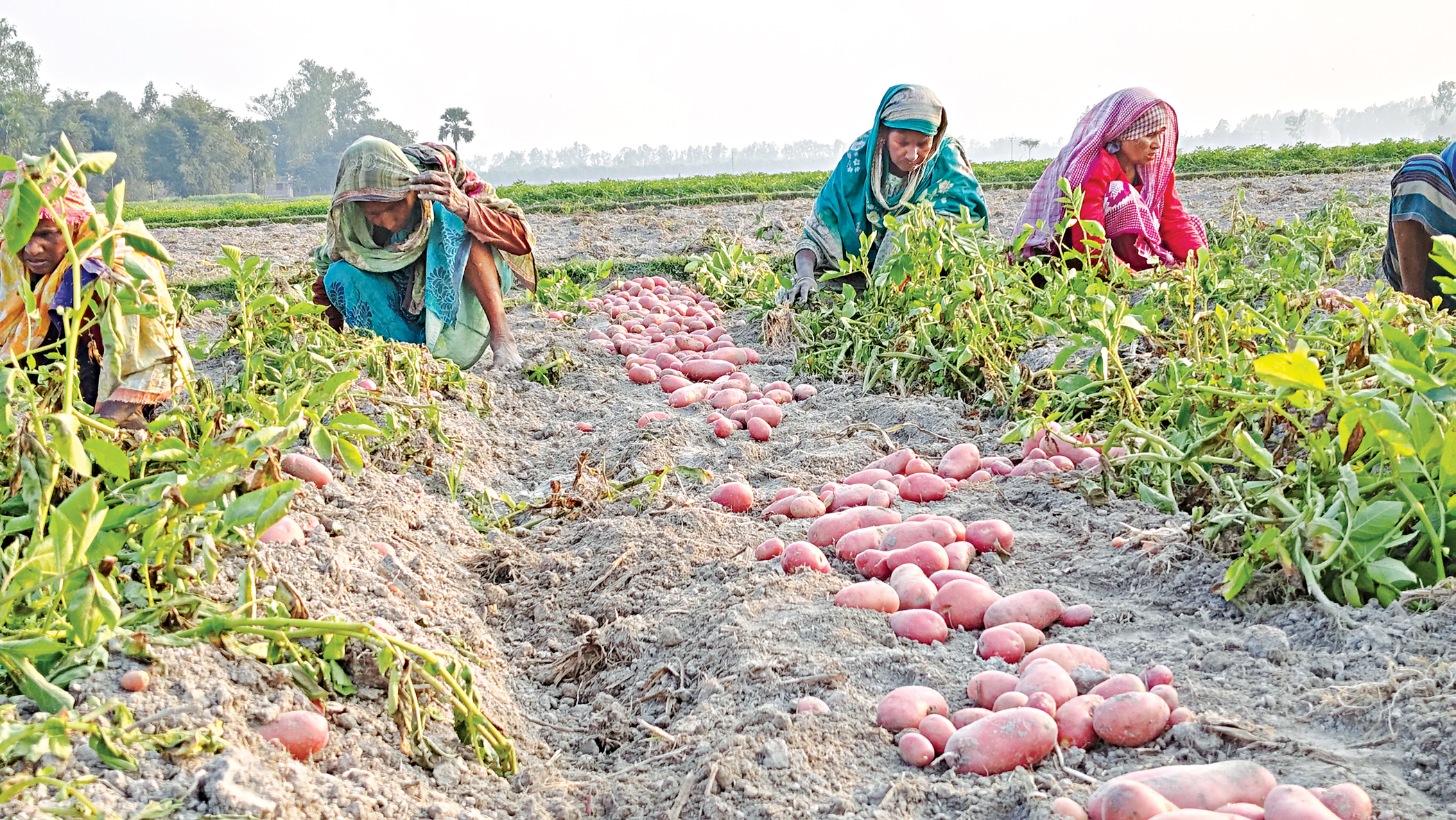 Farmers in the north, central and southern regions said they are selling potatoes in the field at Tk 300–350 per maund (37.32kg), depending on the variety. At the same time last year, the price ranged between Tk 500 and Tk 550.