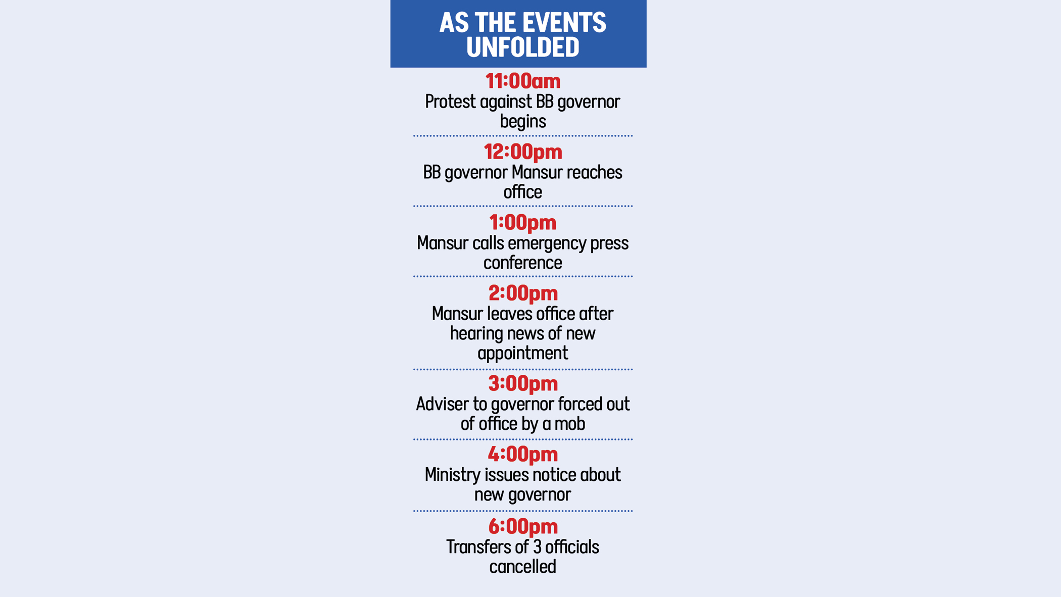 Within hours, the ministry issued two separate notices: one cancelled the remainder of Mansur’s tenure, which was due to run until August 2028, and the other appointed the new governor.