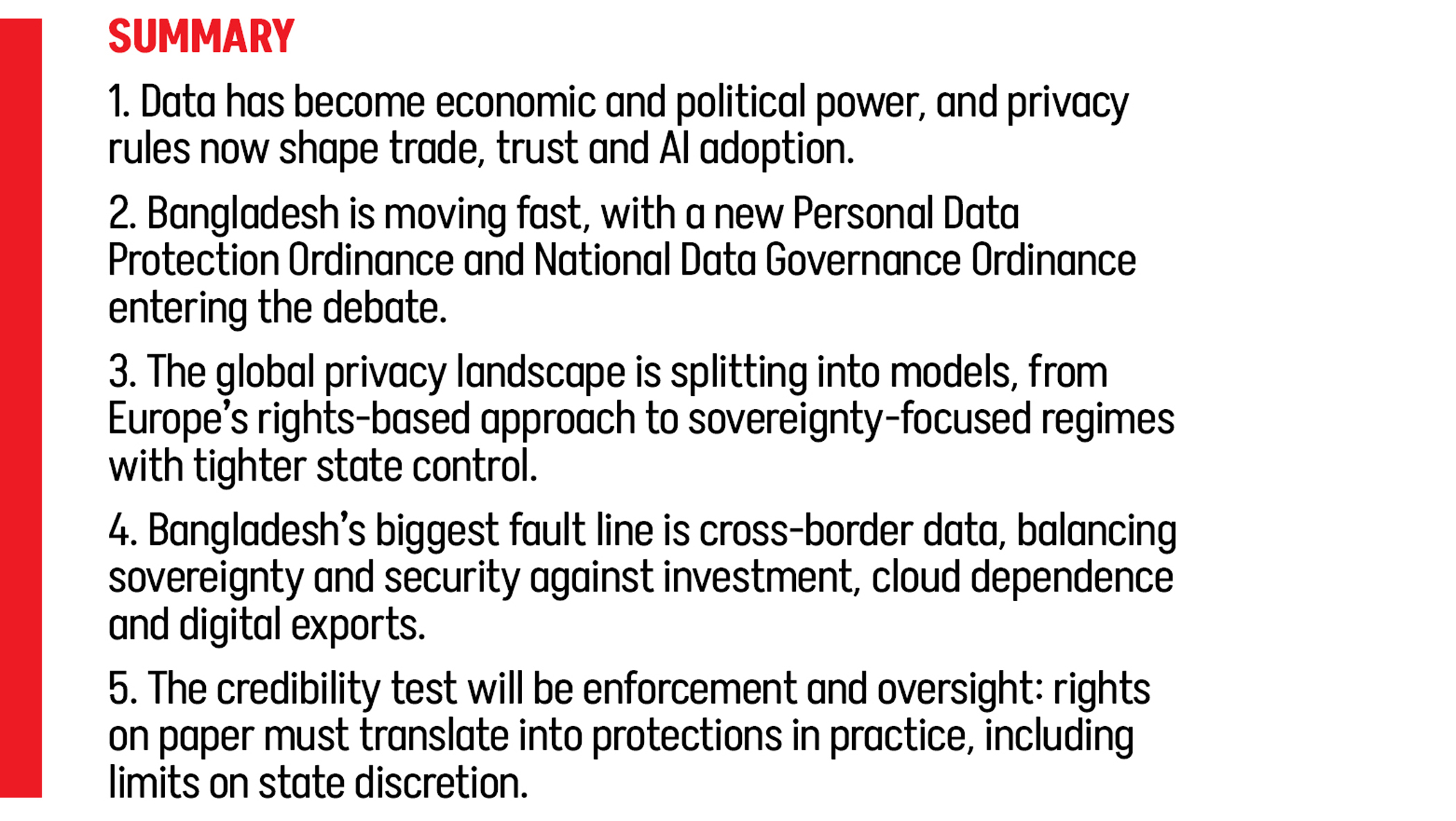 To fit into the global privacy debate in a way that strengthens Bangladesh’s future economy, three tests matter.