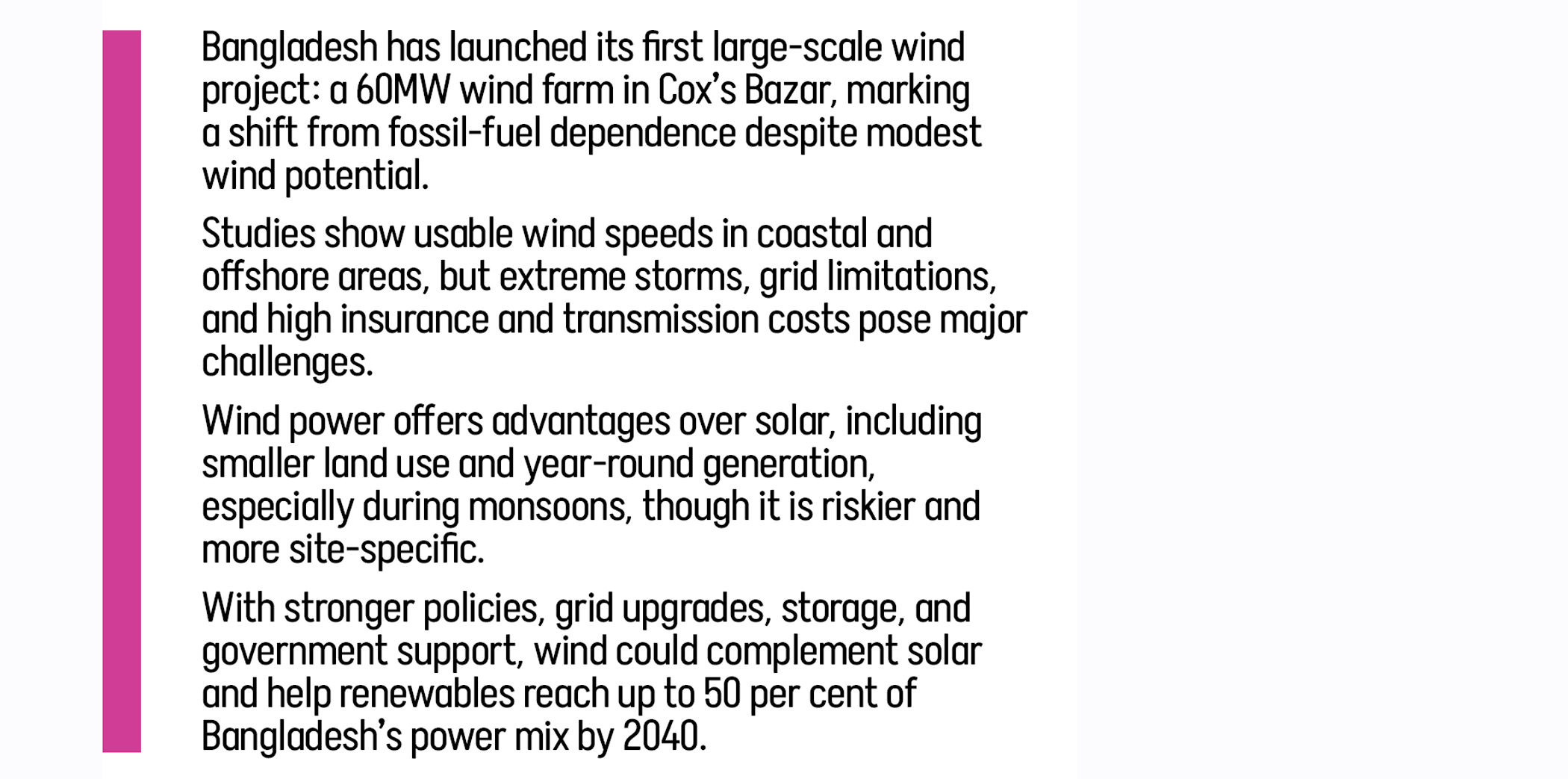 Bangladesh’s grid, historically designed for predictable power from fossil fuel plants, is ill-equipped to handle the variable nature of wind. Without proper measures or the introduction of storage, fluctuations in wind output can destabilise the grid. But here too, there are signs of progress.