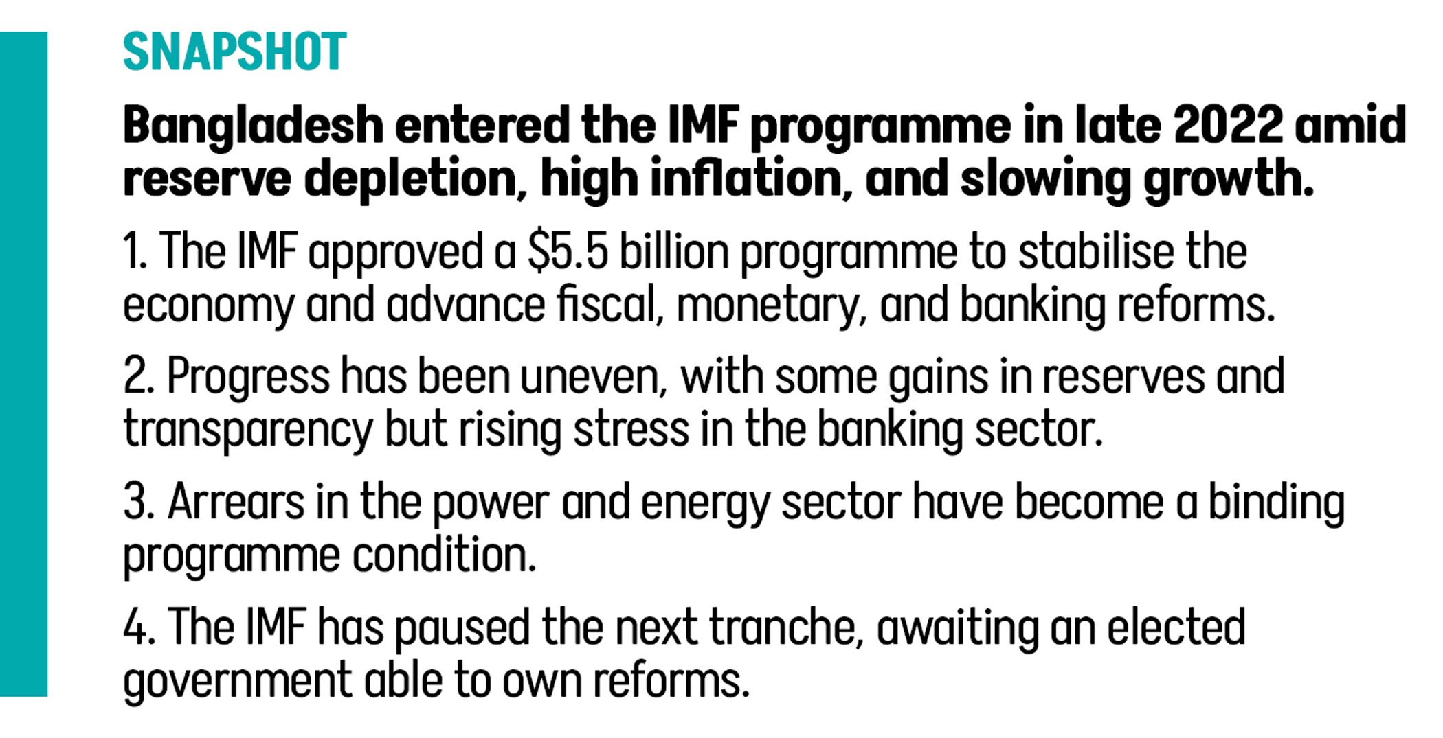 The Fund’s June expansion was a strategic bet on Bangladesh’s reform trajectory. Its November caution is not a reversal, but another hedge. The IMF is signaling their commitment to Bangladesh, but they will not underwrite reforms without a government that can credibly own them. In other words, the IMF gave Bangladesh more rope in June but by November, it decided to hold the rope until someone elected takes the other end.
