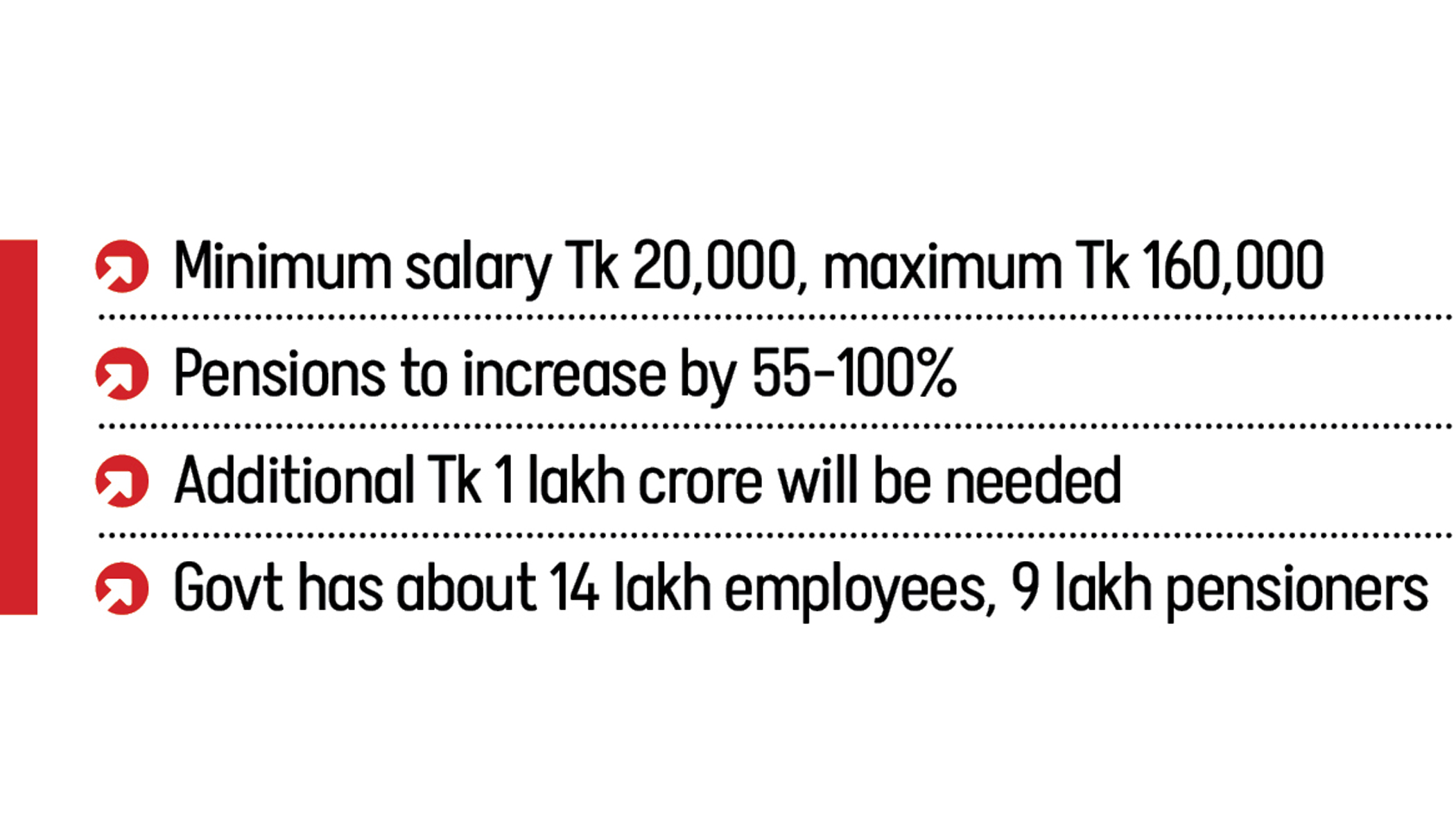 Zakir said implementing the proposals would require an additional Tk 1.06 lakh crore annually. Currently, the government spends Tk 1.31 lakh crore a year for its 14 lakh employees and nine lakh pensioners, the press statement said.