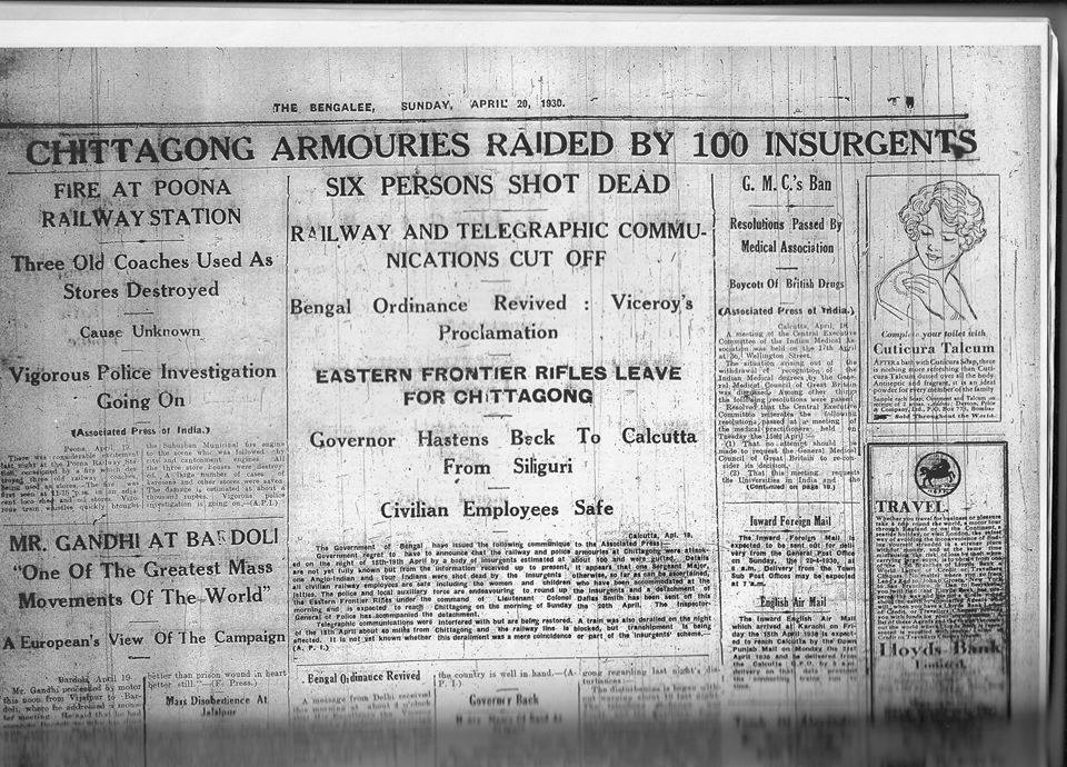 Coming back to the subject of the Chittagong uprising of 1930, what were the circumstances surrounding this part of the world that time? This historical event in the Subcontinent's eastern port city of Chittagong overtook the whole country by surprise, Bewildered public heard how a band of determined youth had launched an armed rebellion against the colonial overlords. Their lightning attack had immobilised all the centres of administration of Chittagong, all the armoires were in their hands... all telegraph and telephone connections were severed, railway lines were uprooted... the whole city was in the hands of the insurgents.