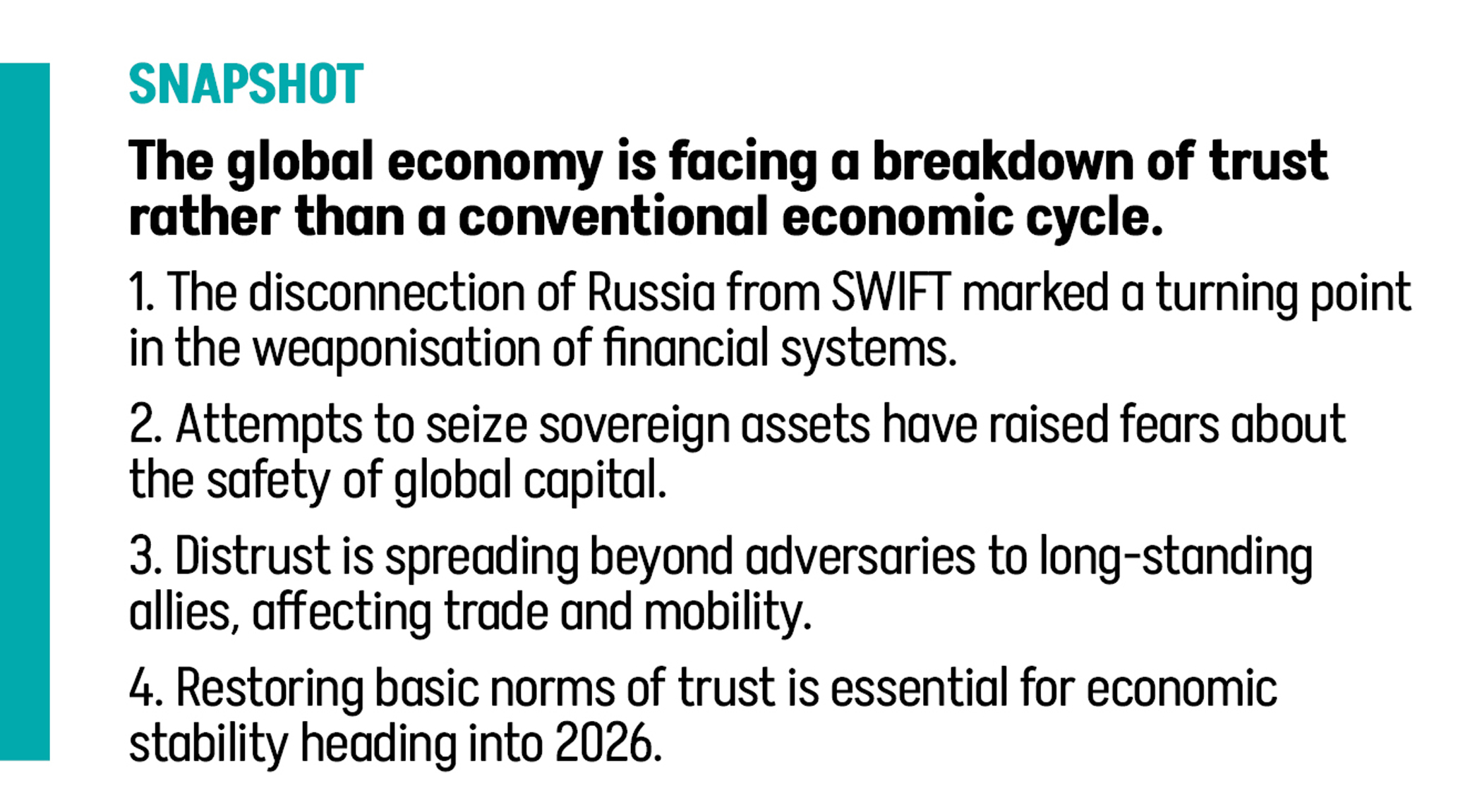 This loss of trust is like “putting toothpaste back in the tube”—once it is out, it is nearly impossible to reverse. When nations realise they can be arbitrarily cut off from the global financial system, the incentive to participate in that system evaporates. This has directly led to a world where the global economy struggles to “come to a sense” because the basic mechanics of international commerce are now mired in suspicion.