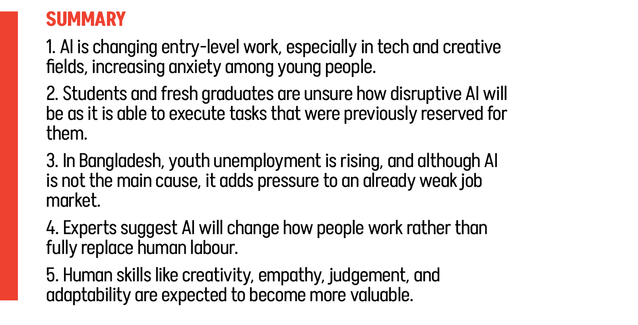 ​In a report by the World Bank, it was stated that unemployment in Bangladesh amongst tertiary-educated youth has increased significantly, with university-educated youth making up 27.8 percent of the total unemployment in 2022. An alarming rise from 9.7 percent in 2013. The rise in employment cannot be attributed to the rise of generative AI, though. However, with job creation stagnating and AI’s rapid improvement following in tandem, the state of the job market hangs in the balance.