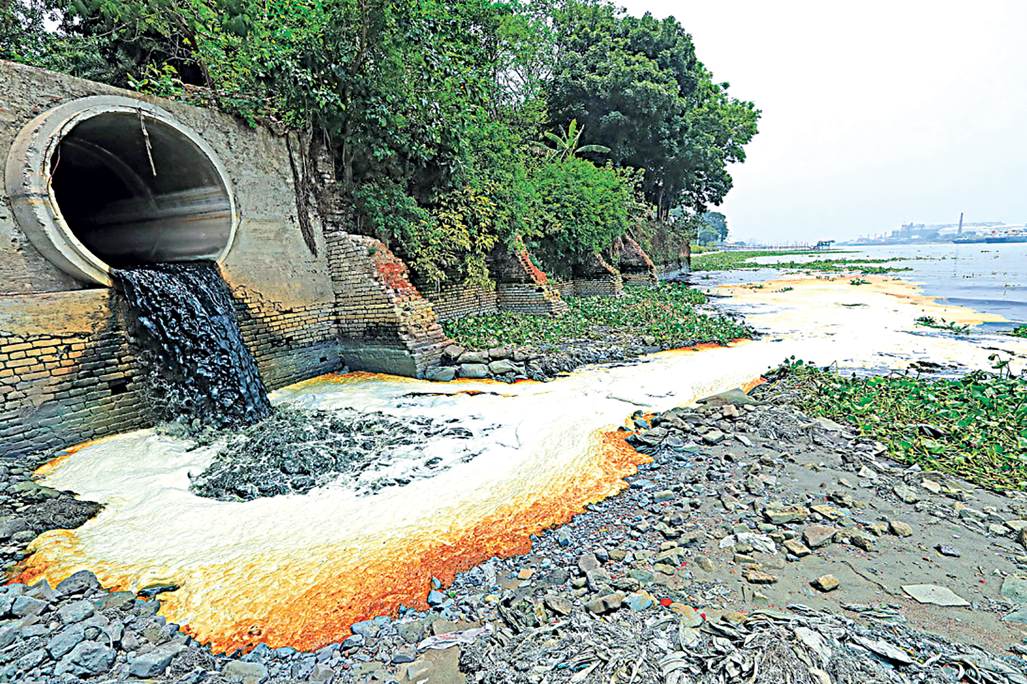 Although river pollution in Bangladesh was initially limited to urban areas, mainly around Dhaka city, the transboundary context of the rivers and growing local drivers are increasing pollutants in the rivers. The rivers surrounding Dhaka, including the Buriganga, Turag, and Shitalakkhya, are among the most polluted in Bangladesh. These rivers receive vast amounts of untreated waste from factories (at least ~3,000) that discharge industrial effluent directly into rivers without proper treatment. Forever chemicals, originating from tanneries, textiles, and chemical industries, have been detected in the rivers around Dhaka city. These substances impose a significant risk to the ecosystem and human health due to their unique, persistent nature of stability, accumulation in living organisms, and the challenge of removing these chemicals using conventional methods.