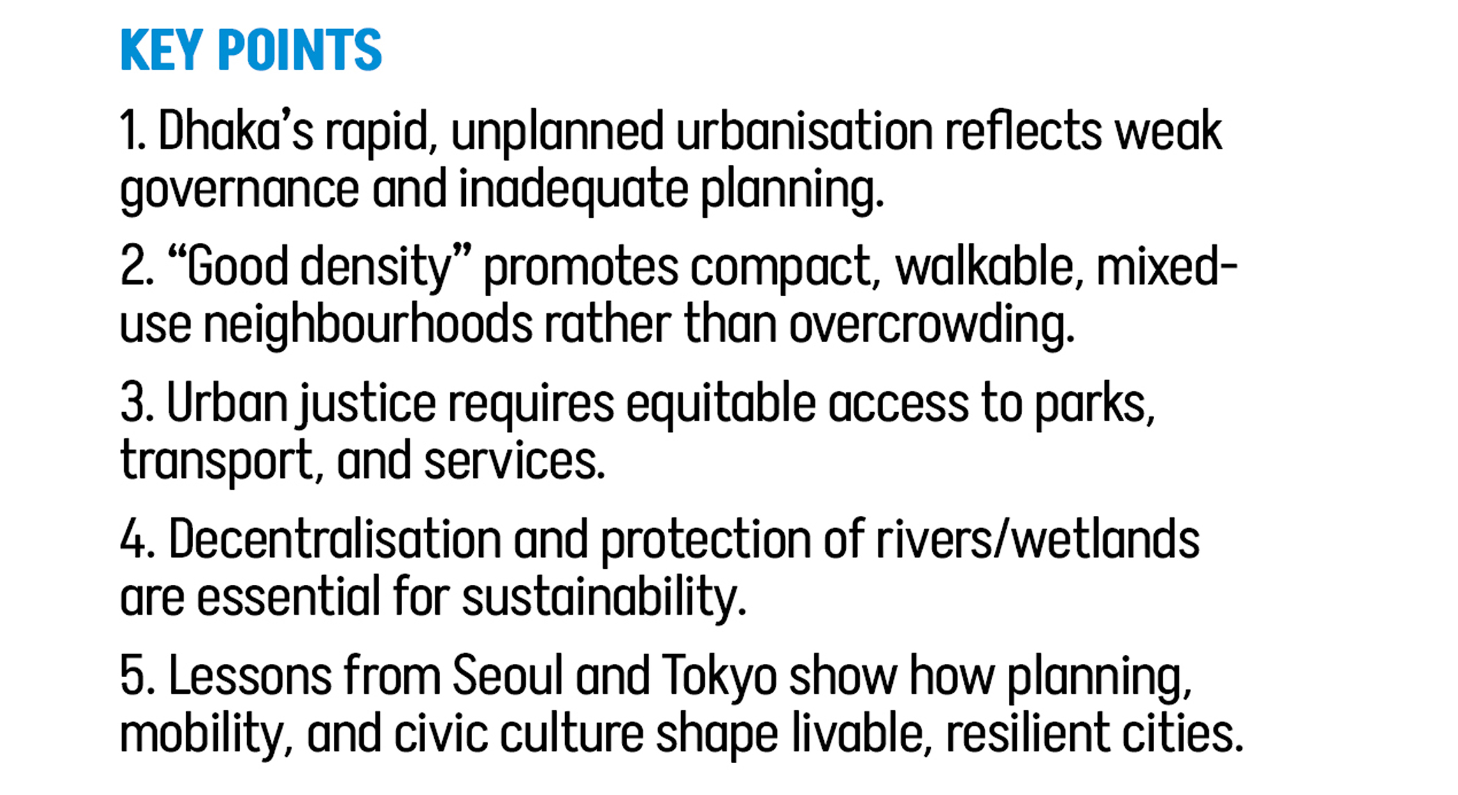 TDS: Could you share examples of locally developed solutions, or lessons from other cities around the world, that might help address Dhaka’s urban problems?