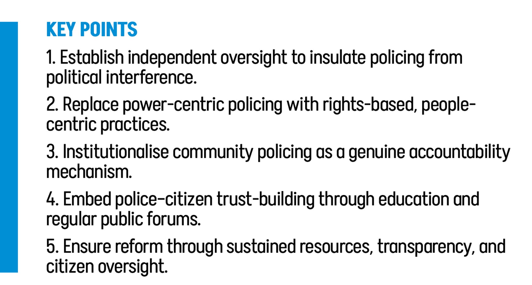 The citizen-oriented proposals in the Police Reform Commission’s report must not be forgotten. If implemented seriously, they could lay the foundation for a policing model rooted in trust, transparency, and shared responsibility. As members of the Police Reform Commission, we carry a responsibility to bring these overlooked recommendations into public conversation — especially as elections draw near.