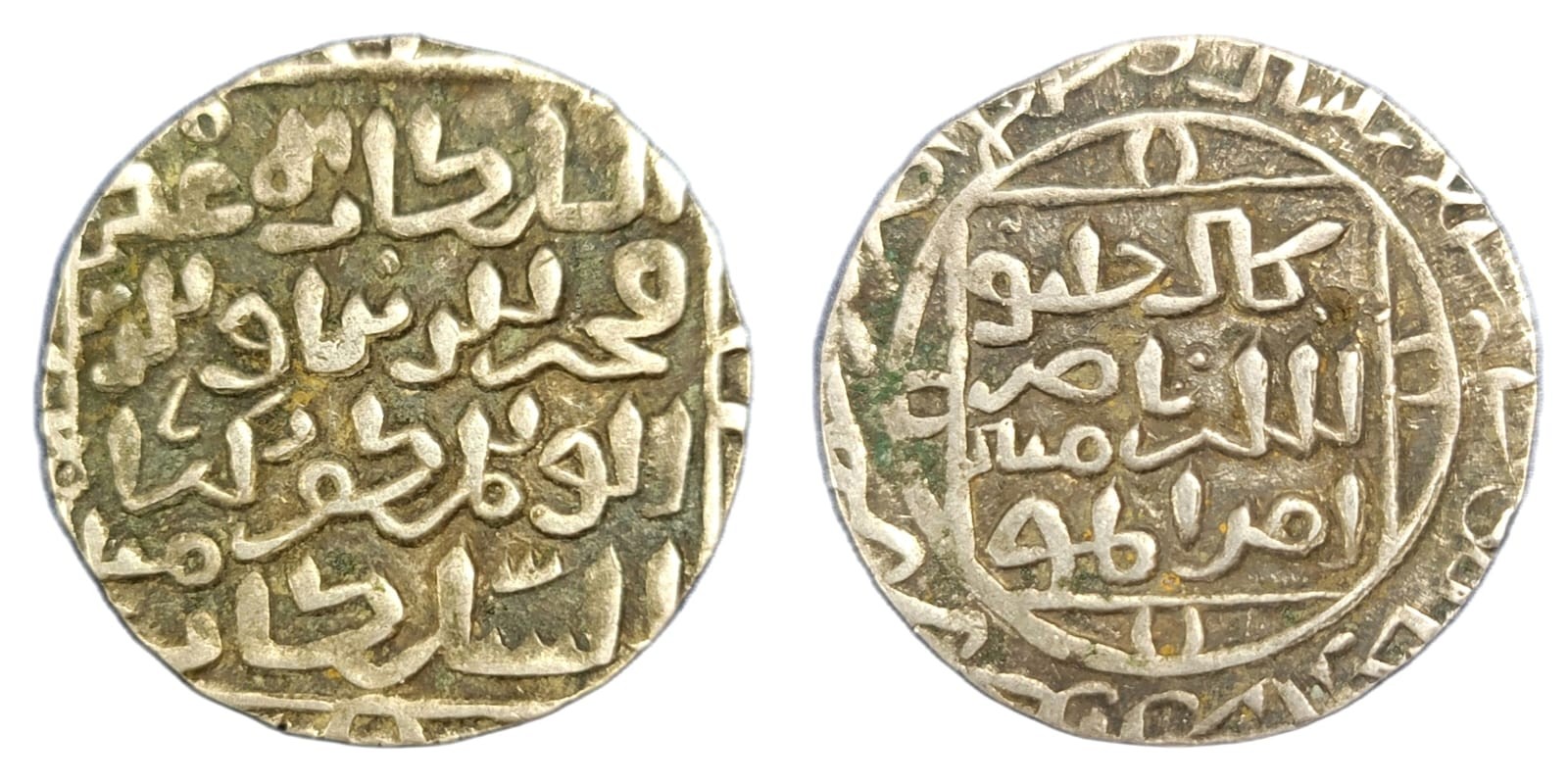 Picture 4: Silver coin of Fakhruddin Mubarak Shah (734 AH).  Obverse (left), Reverse (Right). Photo Courtesy: Noman Nasir
