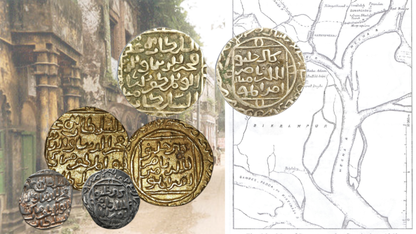 Mamtazur Rahman Tarafder identified the Sultanate capital city in the Mugrapara–Goaldi locality, which contains three Sultanate mosques, a few tombs, ruined monuments, and other relics of historical significance. Habiba Khatun, in her attempt to identify the present location of the capital Sonargaon, noticed that the mint Sonargaon and the iqlim Sonargaon were not the same administrative entity. The former had a limited spatial coverage, while the latter had a wider administrative and spatial significance. She concluded that settlements in Sonargaon in its early phase were centred on the banks of two rivers: (a) the western bank of the Brahmaputra and (b) the eastern bank of the Sitalakhya. With an analysis of the archaeological sites and place names, she commented, “Sultan Fakhruddin Mubarak Shah was the first Sultan of Sonargaon who minted coins from ‘Hazrat Jalal Sonargaon’. The place could be identified with the present village Hazratpur–Jalalpur.”