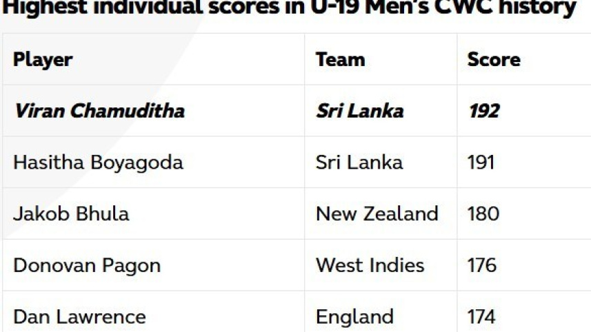 Sri Lanka’s Chamuditha smashes record U19 World Cup knock