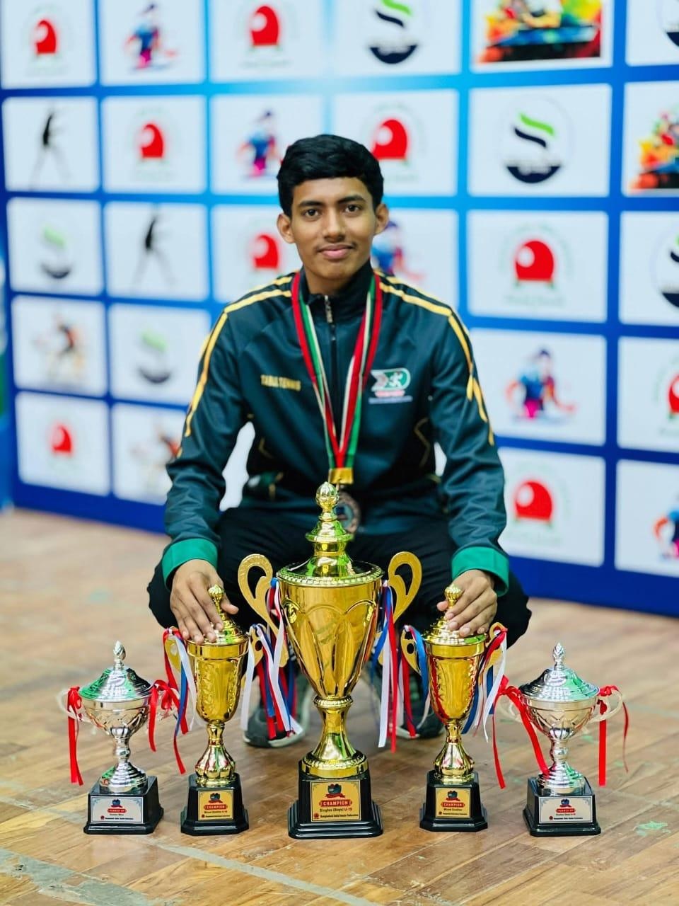 Hasib also won three more titles -- the boys’ team and mixed events in the U-19 section, and the mixed event in the senior section. He finished runners-up in both the u-19 boys’ doubles and men’s doubles, and secured third place in the men’s team event.