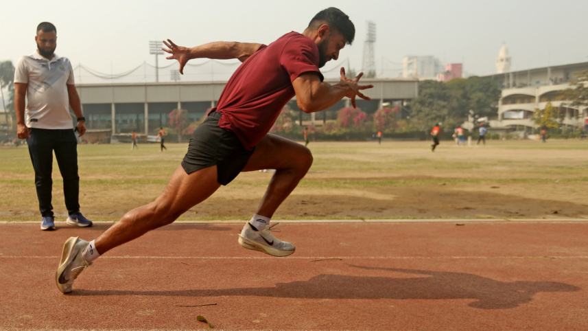 Imranur is preparing for the upcoming Asian Indoor Championships, scheduled to be held in Tianjin, from February 6 to 8. Photos: Firoz Ahmed