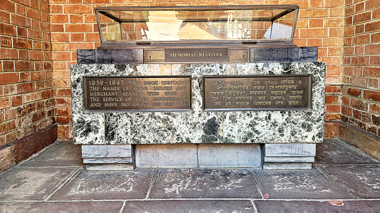A memorial register listing 6,500 merchant navy sailors who perished during the WWII at Chattogram War Cemetery.