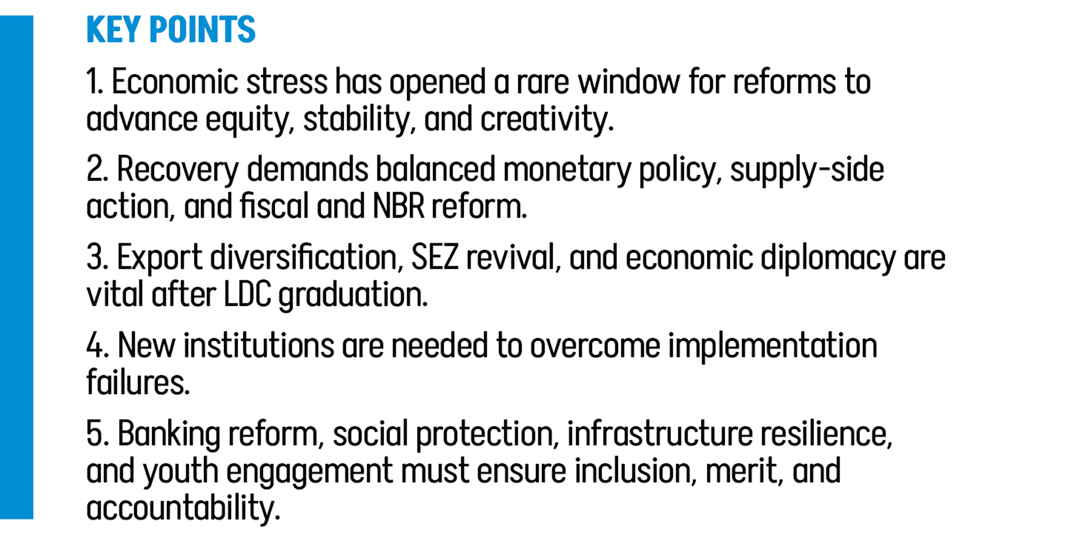 The path forward is clear. What remains uncertain is whether Bangladesh’s leaders and citizens possess the will to walk it. The task force has provided the map. Now comes the harder part: the journey itself. We highly recommend the establishment of a results-oriented consultative mechanism through which stakeholders will help identify reform priorities from the report, refine some of the proposals if needed, and monitor progress in implementation.