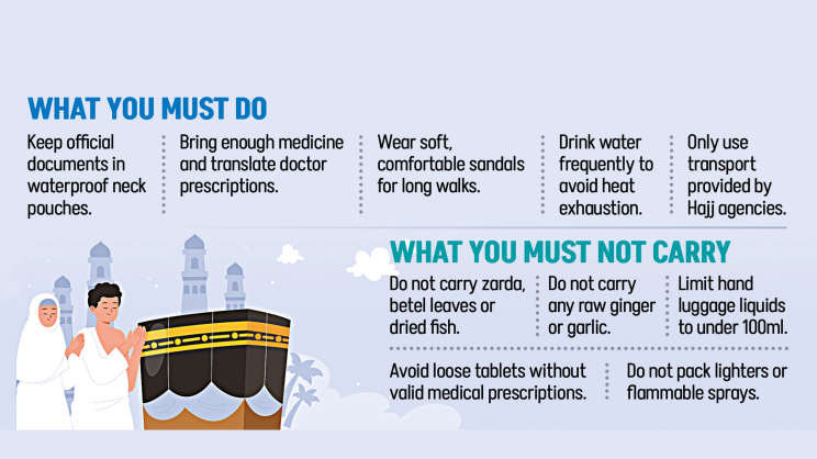 The Hajj environment is strictly regulated to ensure the safety of millions. Failing to follow Saudi customs and administrative laws can lead to severe legal consequences. For instance, carrying prohibited items like zarda, betel leaves and dried fish are strictly mentioned. Under Saudi law, individuals caught with these substances face immediate arrest, long-term imprisonment, and heavy financial penalties. Even common household items, if not packaged correctly, can lead to hours of detention at airport customs.