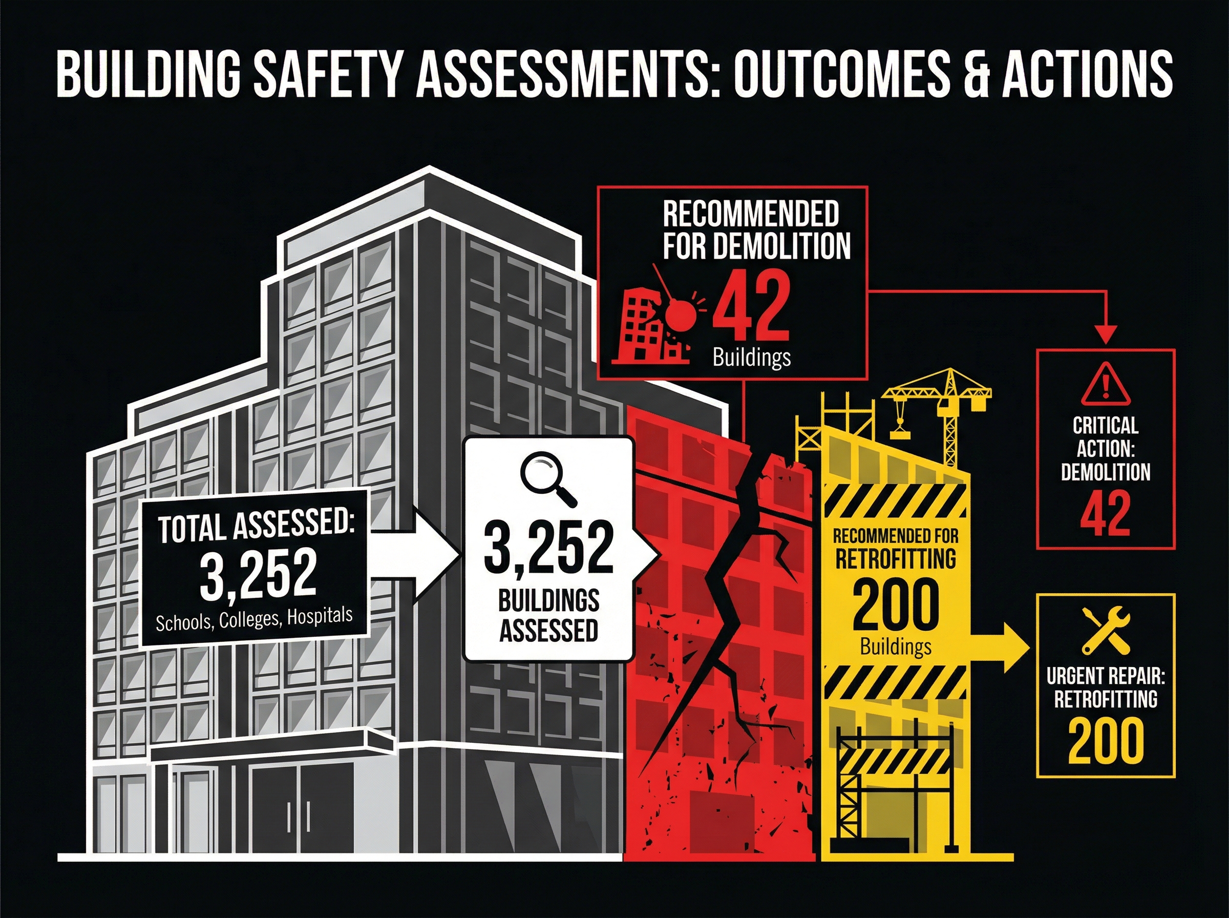 As part of the project, Rajuk worked with six companies to assess 3,252 buildings belonging to schools, colleges, and hospitals. Demolition was recommended for 42 structures, while retrofitting designs for about 200 buildings have already been completed.