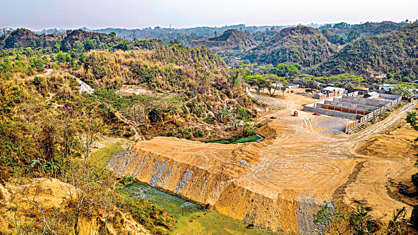 Markets, roads, and homes are being built by cutting the hills of Jungle Salimpur at Alinagar in Sitakunda, Chattogram. The razed hills of the area lay bare the environmental impact of encroachment. This photo was taken recently. Photo: Rajib Raihan