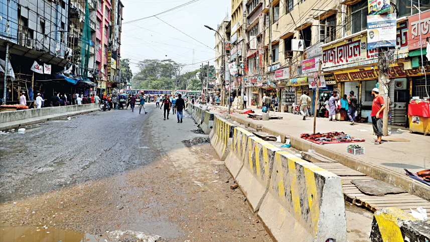 Once crowded with makeshift hawkers’ stalls, Shaheed Abrar Fahad Avenue -- formerly Bangabandhu Avenue -- in the capital’s Gulistan now appears relatively empty. Law enforcers had warned of an ongoing eviction drive by the DSCC to reclaim encroached footpaths and roads, prompting hawkers to voluntarily close their shops and leave the area. The photo was taken yesterday. PHOTO: ANISUR RAHMAN